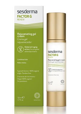 Factor G Renew, de Sesderma, es una crema gel formulada con un potente cóctel de factores de crecimiento que estimula la síntesis de colágeno y elastina de la piel. Basada en la Genocosmética, esta línea de tratamiento actúa en el núcleo celular y estimula la proliferación y actividad de las células, contribuyendo al rejuvenecimiento del rostro. Gracias a la estimulación de colágeno y elastina, Factor G Renew reafirma la piel, incrementa su elasticidad y alisa las arrugas. Está indicado especialmente para mujeres a partir de los 35 años de edad, amantes de la alta cosmética, exigentes y que busquen la innovación.