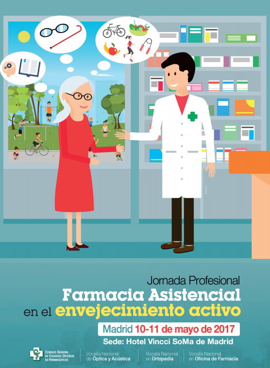Los días 10 y 11 de mayo de 2017 se celebrará en Madrid la Jornada Profesional sobre Farmacia Asistencial en el Envejecimiento Activo bajo el lema “El Farmacéutico, cerca de nuestros mayores” que reunirá a profesionales farmacéuticos del ámbito de la farmacia comunitaria. Una jornada organizada por el Consejo General de Colegios Farmacéuticos, a través de la Vocalía Nacional de Oficina de Farmacia, Vocalía Nacional de Óptica y Vocalía Nacional de Ortopedia.
