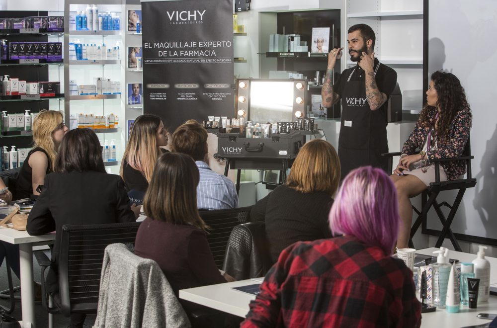 Durante los próximos meses, Laboratorios Vichy formará a más de 120 estudiantes de maquillaje de 5 escuelas de toda España (Madrid, Bilbao, Sevilla, Barcelona y Valencia) para crear una sinergia estratégica entre la farmacia y el maquillaje, ya que posteriormente compartirán sus conocimientos en maquillaje con los farmacéuticos de 300 farmacias españolas y realizarán sesiones gratuitas de maquillaje a las consumidoras.