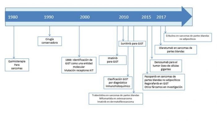 Los sarcomas y, en particular, los GISTs han experimentado importantes avances en su diagnóstico y tratamiento en los últimos años, pasando en menos de 10 años de ser tumores mal identificados y resistentes a la quimioterapia convencional, a convertirse en una entidad biológica e histopatológicamente bien entendida y distinguible de otros sarcomas.