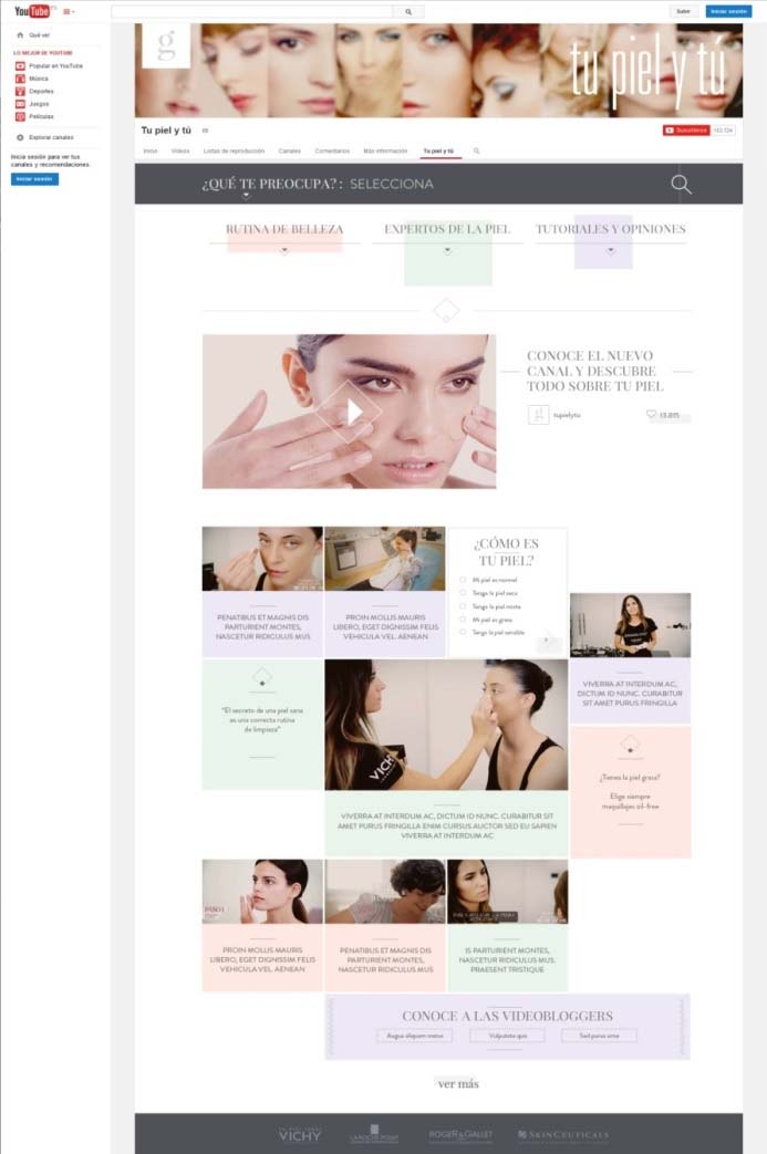 La semana pasada, la división de farmacia del grupo L’Oréal, de la mano de las marcas líderes del mercado de la dermocosmética, Laboratorios Vichy, La Roche-Posay, SkinCeuticals y Roger&Gallet, lanzaron el primer “customized cannel” sobre el cuidado de la piel en Youtube, llamado “Tu Piel y Tú”. En él, las usuarias encontrarán videos tutoriales y consejos de la mano de los médicos estéticos y dermatólogos españoles más influyentes, farmacéuticos, blogueras de moda y otras usuarias compartiendo sus trucos de belleza. El canal incluye unos filtros por problemáticas, para que la usuaria pueda elegir