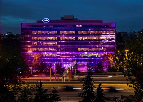 La sede de Roche Farma se ha iluminado de color rosa como muestra de su apoyo a las pacientes con cáncer de mama, con motivo del Día Mundial. Un gesto que se suma al compromiso que a lo largo de varias décadas ha demostrado la compañía en la investigación y desarrollo de opciones de tratamiento que dan respuesta a necesidades médicas no cubiertas frente a este cáncer, el más común en la mujer, con 26.000 nuevos casos diagnosticados al año en nuestro país.