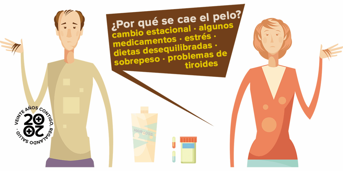 El pelo sufre influencias de todo el organismo: en particular hormonales, estrés, fatiga, etc. Pero, además, con el cambio estacional, en otoño, aumenten los problemas de caída, debilidad en el pelo y hasta aparición de eczemas. Además del cambio estacional, la caída del cabello puede estar provocada por: