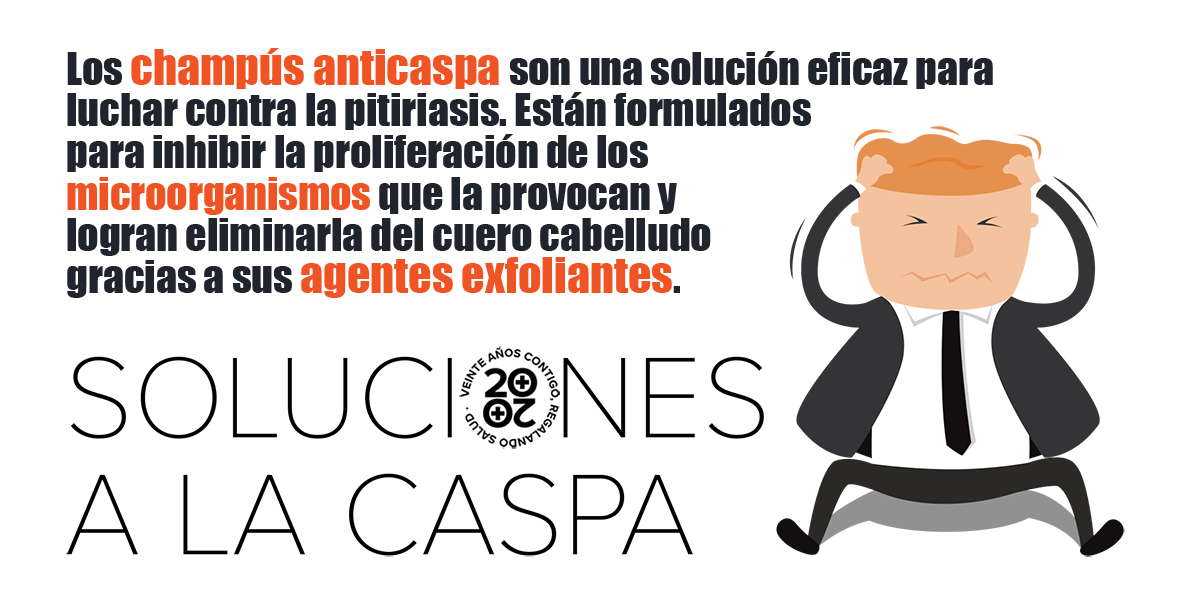 1. Los champús anticaspa son una solución eficaz para luchar contra la pitiriasis. Están formulados para inhibir la proliferación de los microorganismos que la provocan y logran eliminarla del cuero cabelludo gracias a sus agentes exfoliantes. En la farmacia nos podrán recomendar el más adecuado a cada caso. Eso sí, debemos ser constantes en su utilización y atenernos a las recomendaciones de utilización (algunos debemos dejarlos actuar sobre el cabello algunos minutos).