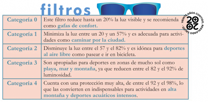 3. El tipo de filtros. No te fijes tanto en el color y guíate mejor por los filtros que tenga la lente. Los filtros van del 0 al 4 (en función del grado de intensidad con el que filtra la luz visible y teniendo en cuenta la clasificación de la Unión Europea):