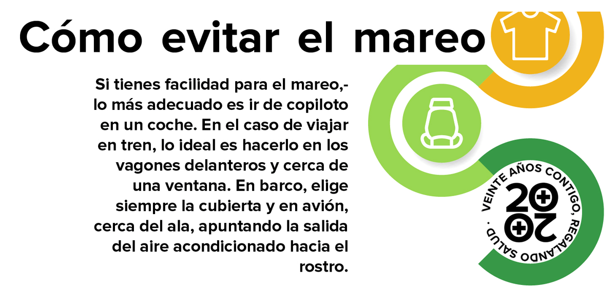 - El mareo del viajero se produce normalmente en personas predispuestas. Si el trayecto es largo, conviene planificar el recorrido por adelantado, salir con tiempo y procurar hacer paradas cada dos horas.