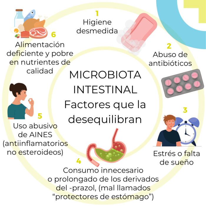 - El estrés o la falta de sueño, que pueden afectar negativamente a nuestra salud intestinal.