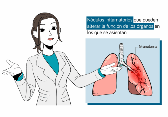 La sarcoidosis es una patología sistémica que implica una alteración del sistema inmunitario, lo que provoca formación de granulomas (nódulos inflamatorios) que pueden comprometer el funcionamiento de distintos órganos como pulmones, ganglios linfáticos, piel, ojos, hígado o el sistema nervioso.