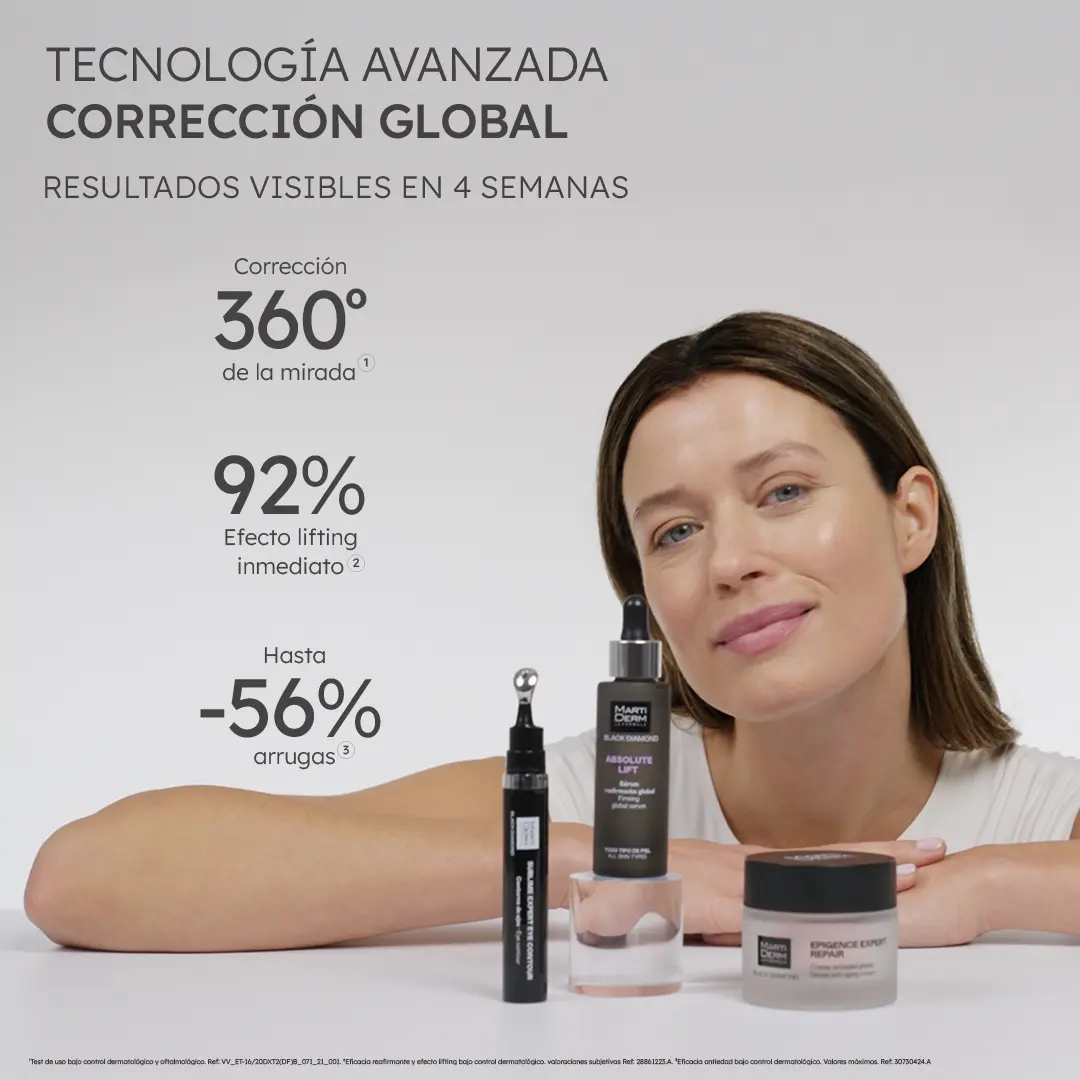 El segundo paso es Absolute Lift, un sérum reafirmante que ofrece un efecto lifting inmediato y duradero. Gracias a la incorporación de complejos peptídicos y proteoglicanos, actúa sobre la elasticidad de la piel y ayuda a redefinir el óvalo facial. Los estudios clínicos reflejan una alta percepción de efecto lifting entre los usuarios, así como mejoras significativas en la firmeza.